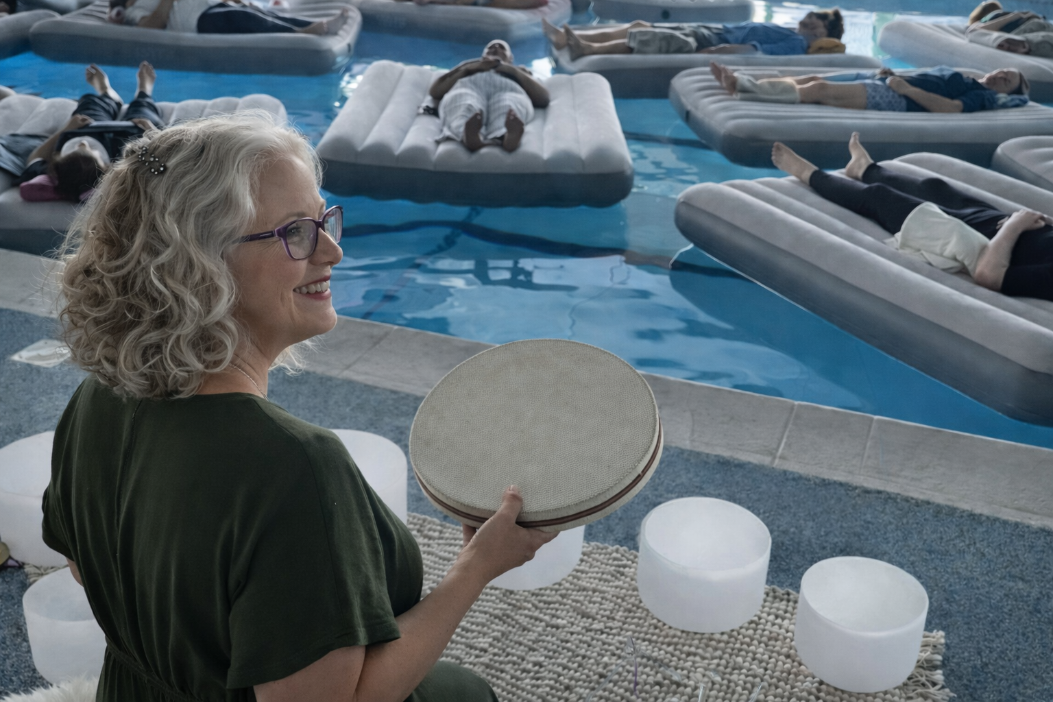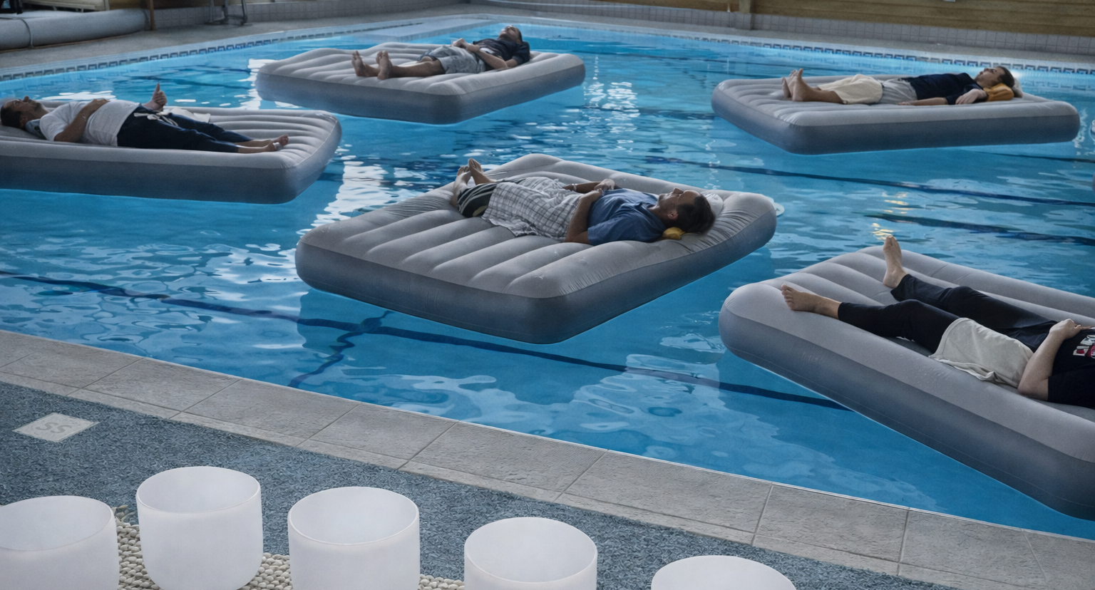 Unwind with a floating sound bath in a warm, calm pool
